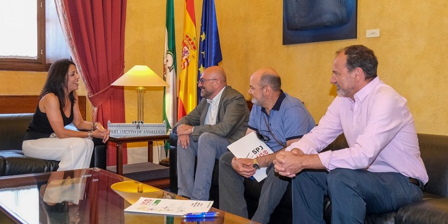 El secretario general del Sindicato Profesional de Justicia de USO, Javier Toro; el secretario general de SPJ-USO Andalucía, Adriano Moreno; y el secretario de Organización de la Federación de...