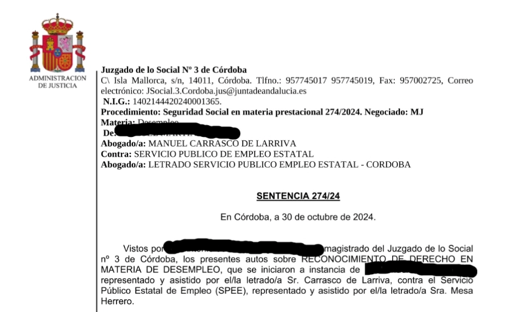 El Juzgado de lo Social Nº3 de Córdoba ha dictado una sentencia pionera (274/24 del 30 de octubre de 2024) que reconoce el derecho a la prestación por desempleo...