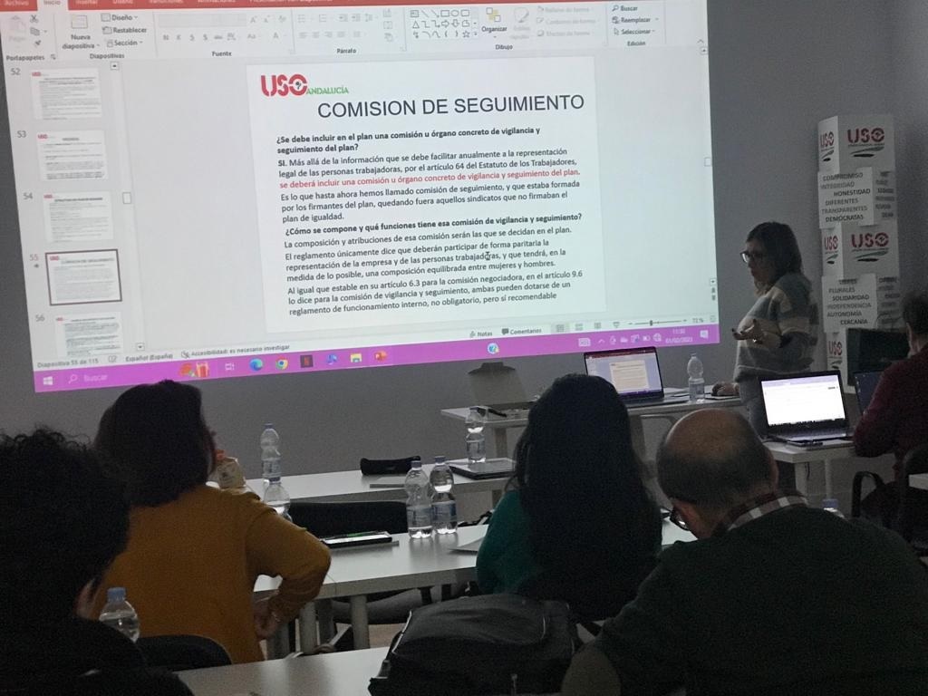La responsable de Igualdad de USO-Andalucía, Pilar Bravo, imparte formación a delegados para capacitarles en la negociación de planes de igualdad en sus empresas USO-Andalucía apuesta por la formación...