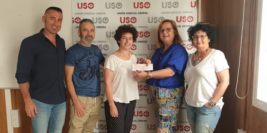 Compañeras de la Unión Provincial de USO-Málaga y responsables de la sección sindical de FTSP-USO en el aeropuerto de Málaga han hecho entrega del cheque por el importe de...