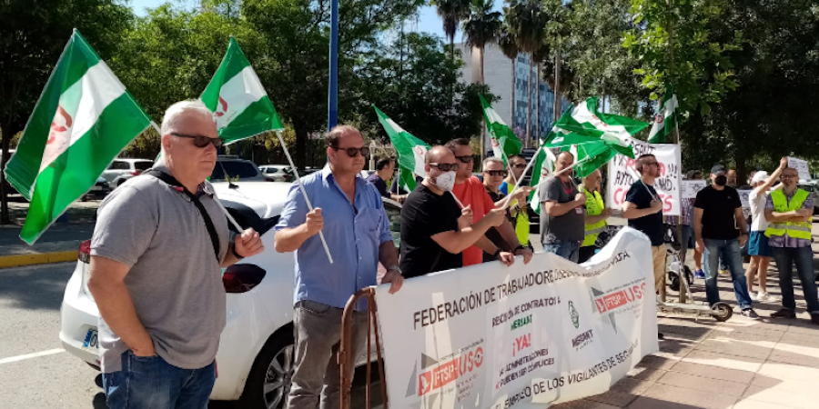 USO-Andalucía protesta frente al SAE contra la empresa pirata Mersant, que presta el servicio de seguridad en las instalaciones de Sevilla La Federación de Trabajadores de Seguridad Privada de...