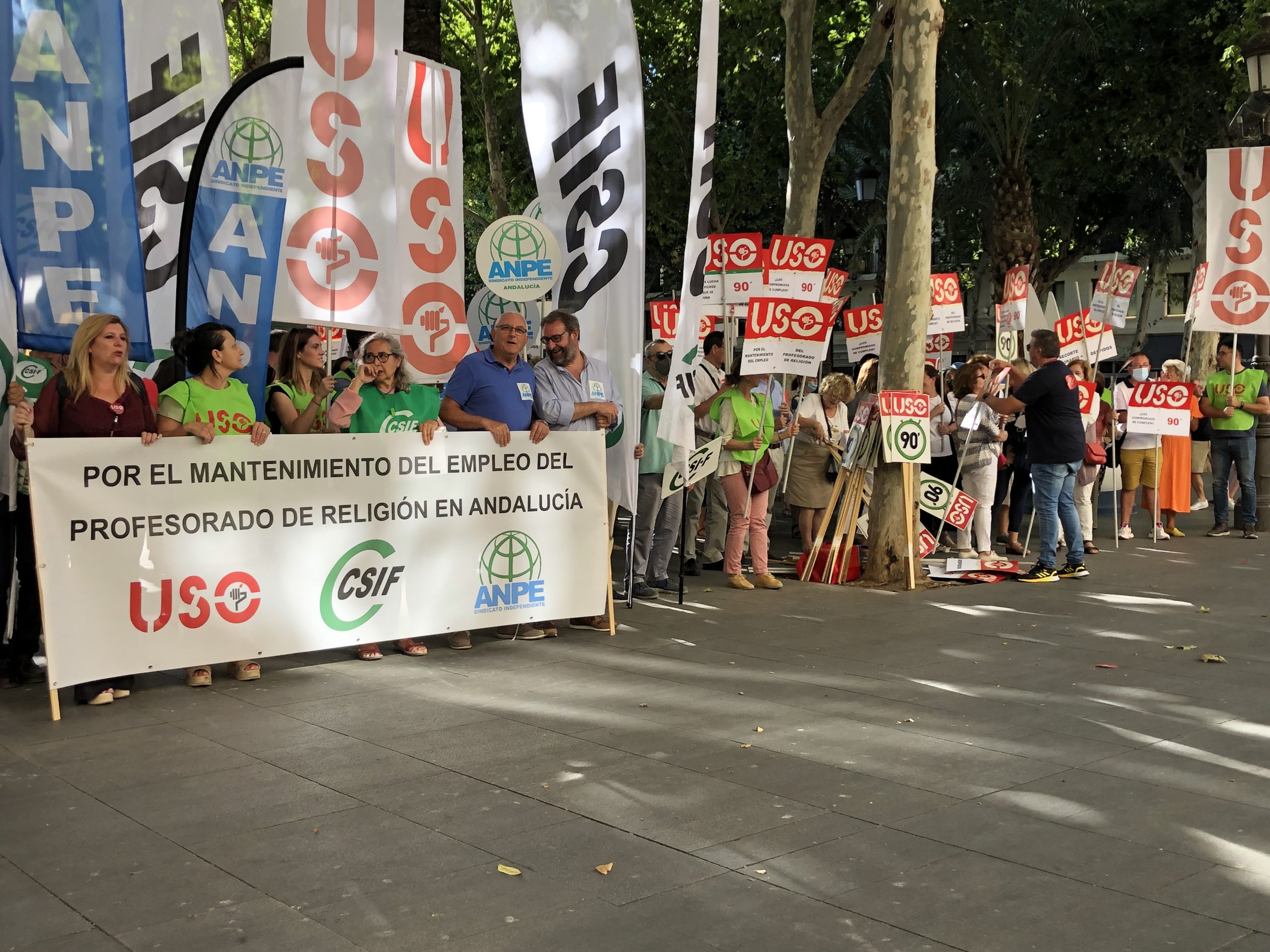 Cientos de profesores de Religión han respondido a la convocatoria de concentraciones de USO, CSIF y ANPE en todas las capitales andaluzas para defender el futuro de sus puestos de trabajo