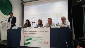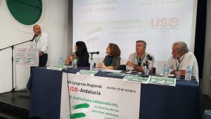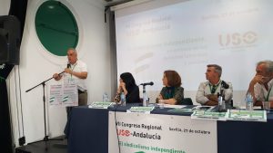 Así mismo, el secretario general de USO ha reivindicado que «en Andalucía son urgentes las políticas por el cambio del modelo productivo, porque la solución tiene que ser siempre el trabajo con derechos y salarios que permitan desarrollar la vida». Aprovechando la presencia del delegado del Gobierno en Andalucía, Pérez ha reclamado un nuevo modelo de diálogo social, más plural y transparente en el que la USO sea reconocida como tercera fuerza sindical.