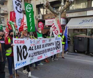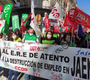 «No al ERE en Atento, no a la destrucción de empleo en Jaén» es la reivindicación plasmada en la pancarta que ha encabezado la manifestación de hoy que ha recorrido las calles de la capital jienense. Atento quiere poner en marcha un despido colectivo escudándose en que los clientes no quieren que se presten servicios desde el centro de trabajo de Jaén.