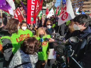 USO-Andalucía ha salido hoy a la calle para manifestarse junto al resto de sindicatos con representación en Atento Jaén contra el ERE que plantea la empresa y que afectaría a unos 150 trabajadores.